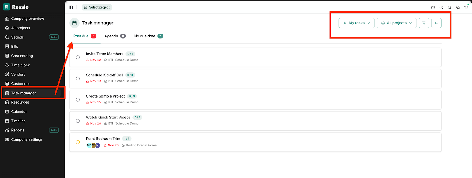 Ressio's Schedule lets builders assign tasks directly to vendors with a Notify button that sends an email with a magic link to the task — including scope, due date, and attached files. Vendors can confirm task acceptance before they ever set foot on site. For issues that come up unexpectedly, To-Dos handle everything outside the formal schedule. Each to-do is assigned to one person with instant notification and priority flagging so urgent issues get resolved fast and nothing disappears into a group chat.
